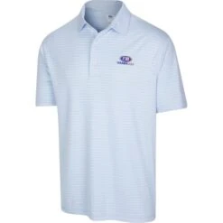 Oxford stripe interlock has PlayDry Technology which is a leading moisture management system that wicks perspiration away from the skin and transports it to the garment’s outer layer so it an evaporate into the air. You stay cool, dry and comfortable. UPF 50+ give added sun protection.