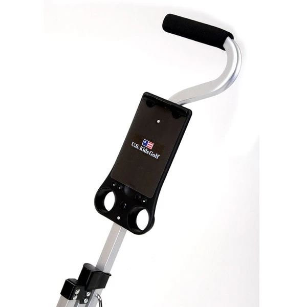 Lightweight construction pull cart with detachable wheels. Adjustable top bracket to fit golf bags 23″ (UL45) and above. The dual strap secures the golf bag to the cart.
